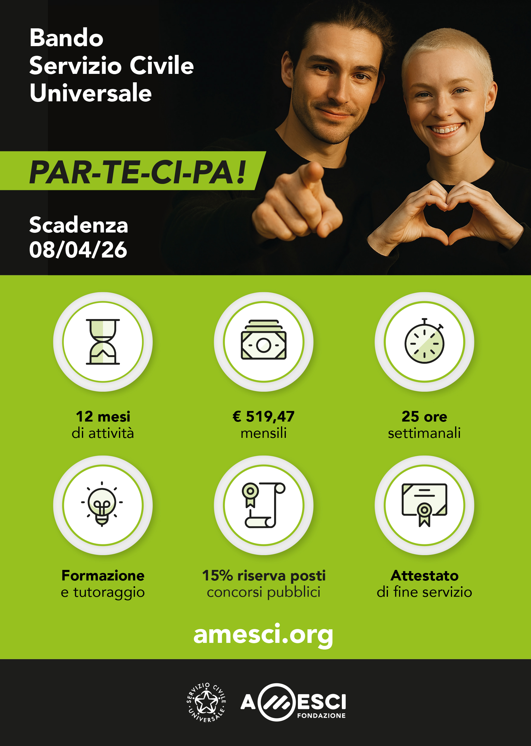 Si informa inoltre che giovedì 26/03/2026 alle ore 11 su piattaforma Zoom si terrà un Webinar online #TeLoSpiegaAmesci. Per iscriversi al webinar: bit.ly/webinarAmesci26marzo