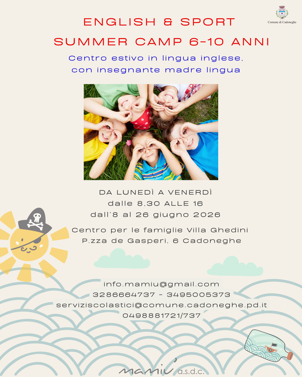 Inserire come oggetto della mail: COGNOME E NOME FIGLIO/A - ISCRIZIONE "ENGLISH AND SPORT SUMMER CAMP 2026".